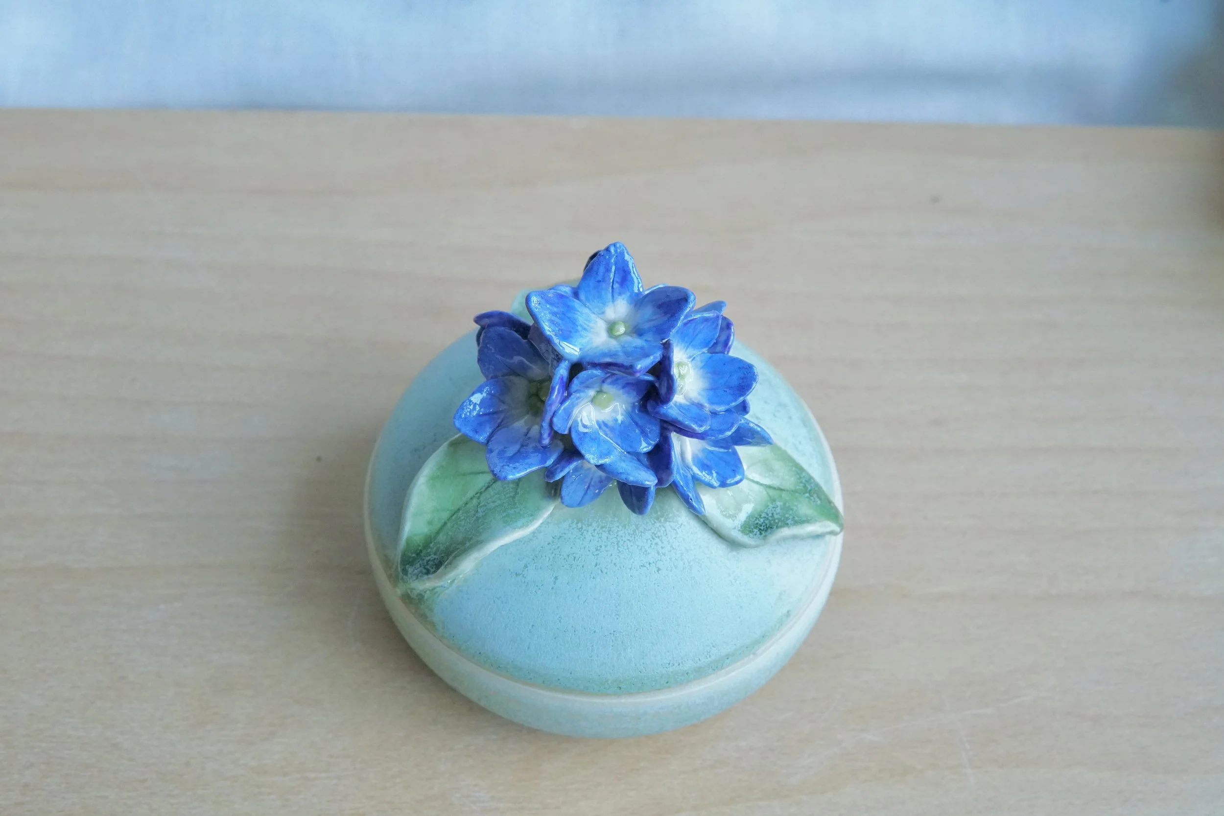 Hydrangea inspired flower jar.
